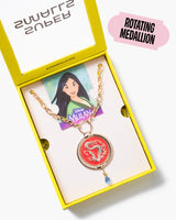 Embrace the harmony of strength and grace with Disney's Mulan Spinning Pendant Necklace – it's a fashion statement fit for a warrior, just like Mulan herself!