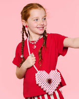 - A heart-shaped, beaded purse made for dress-up magic