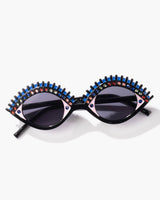 - Eye-catching cobalt enamel "eyeshadow" and rainbow gem "eyeliner" design